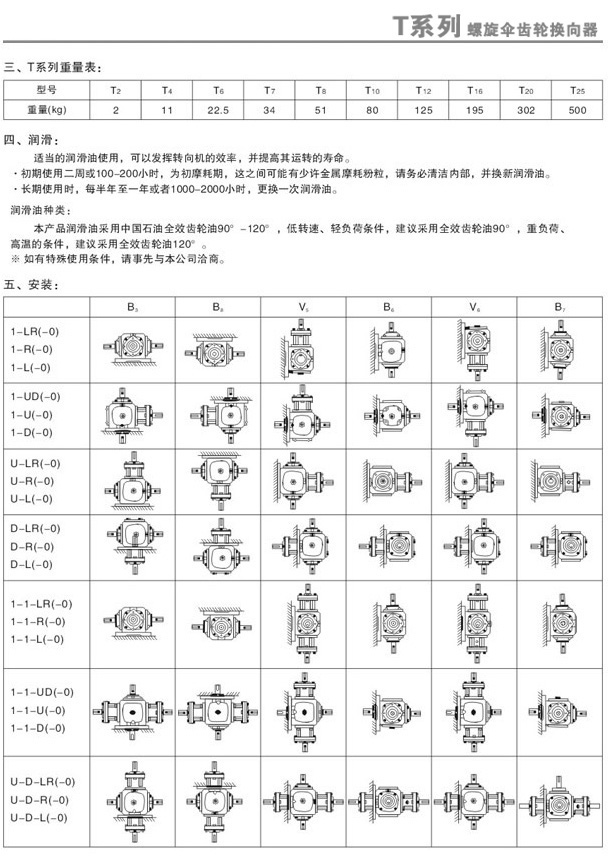 比如: T6-1:1-1-L 與 T6-1:1-1-R ,了解一點英語的記這個就很方便了: Left,左; Right:右。 表示輸出軸一個在左一個在右。 如果是 T6-1:1-1-LR , 表示輸出雙軸,有左有右,即雙軸輸出。 如果后面加了-O, 比如 T6-1:1-1-L-O, 這是用來與 T6-1:1-1-L 區分的。仔細看這兩個圖形,你會發現,他們的外形一樣,只是內部的傘齒輪一個在左一個在右,這樣配置的目的就是使輸出軸的旋轉反個方向。