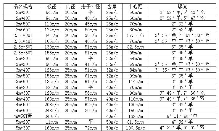 下一篇:齒輪規格對照表