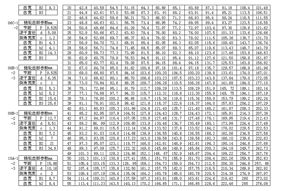 鏈輪型號:包含非標鏈輪(根據客戶圖紙定制),標準鏈輪(美標和公制)。 鏈輪常用材料:C45 鏈輪常用加工方法:淬火處理,表面發黑處理。 注:p 鏈條節距 z 鏈輪齒數 d1 鏈條滾子直徑