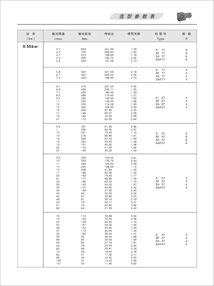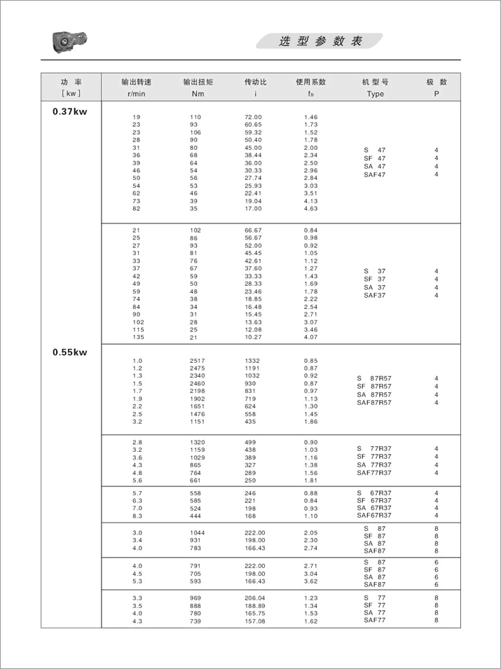 上一篇:S系列斜齒輪蝸桿減速機選型參數表0.75KW