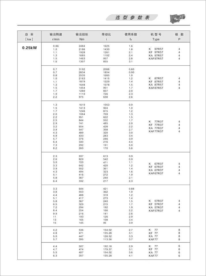 上一篇:K螺旋錐齒輪減速機(jī)選項(xiàng)參數(shù)表0.37KW